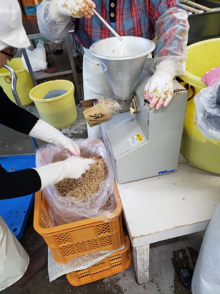 “焼き肉のたれ”の製造に使う"味噌”、会員も自宅用に作っていますが、みそ汁、みそ鍋、美味しいです!!